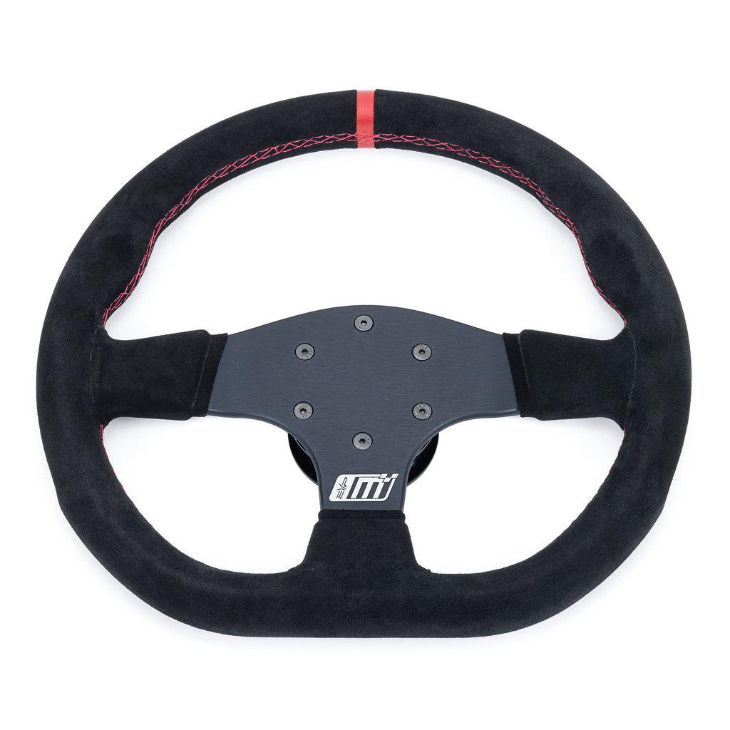 • EVP.MOde Steering Wheel is black anodized for styling and wrapped with Italian suede for a comfortable, controlled feel