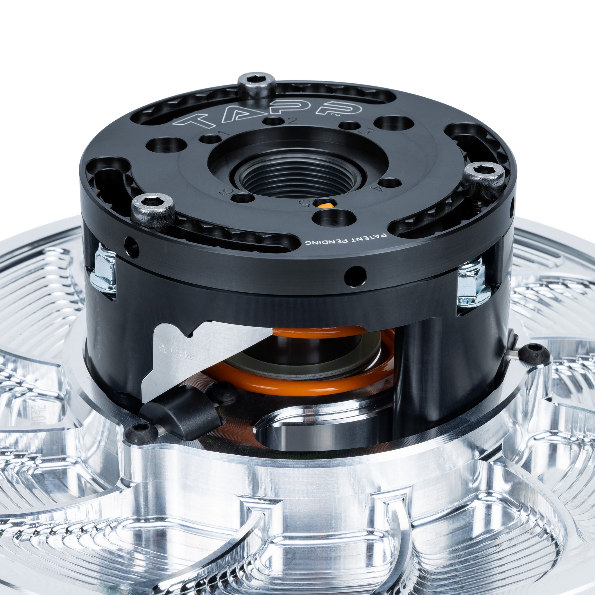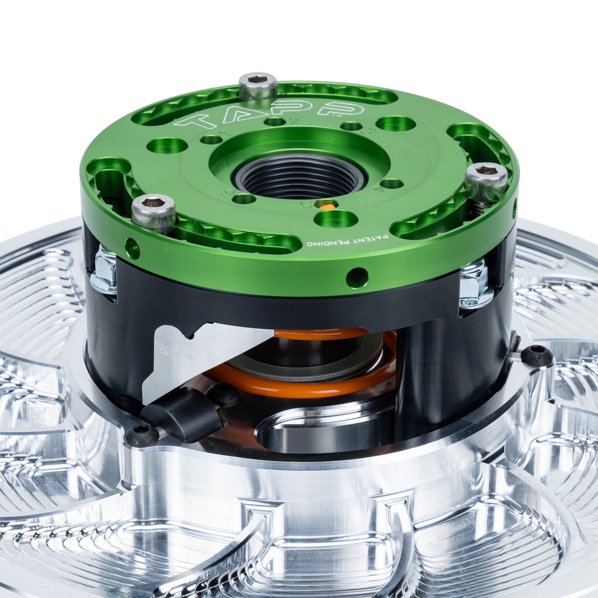 EVP DISCLAIMER: The EVP TAPP Secondary Clutch is currently only available for dune customers who do not use a clutch cover. The TAPP Secondary has the helix and spring on the outward facing side of the clutch, whereas the OEM secondary has these components facing the transmission. An EVP Clutch Cover Spacer Kit will be available soon for H2 TAPP secondary clutches, which allows the OEM clutch cover to fit.