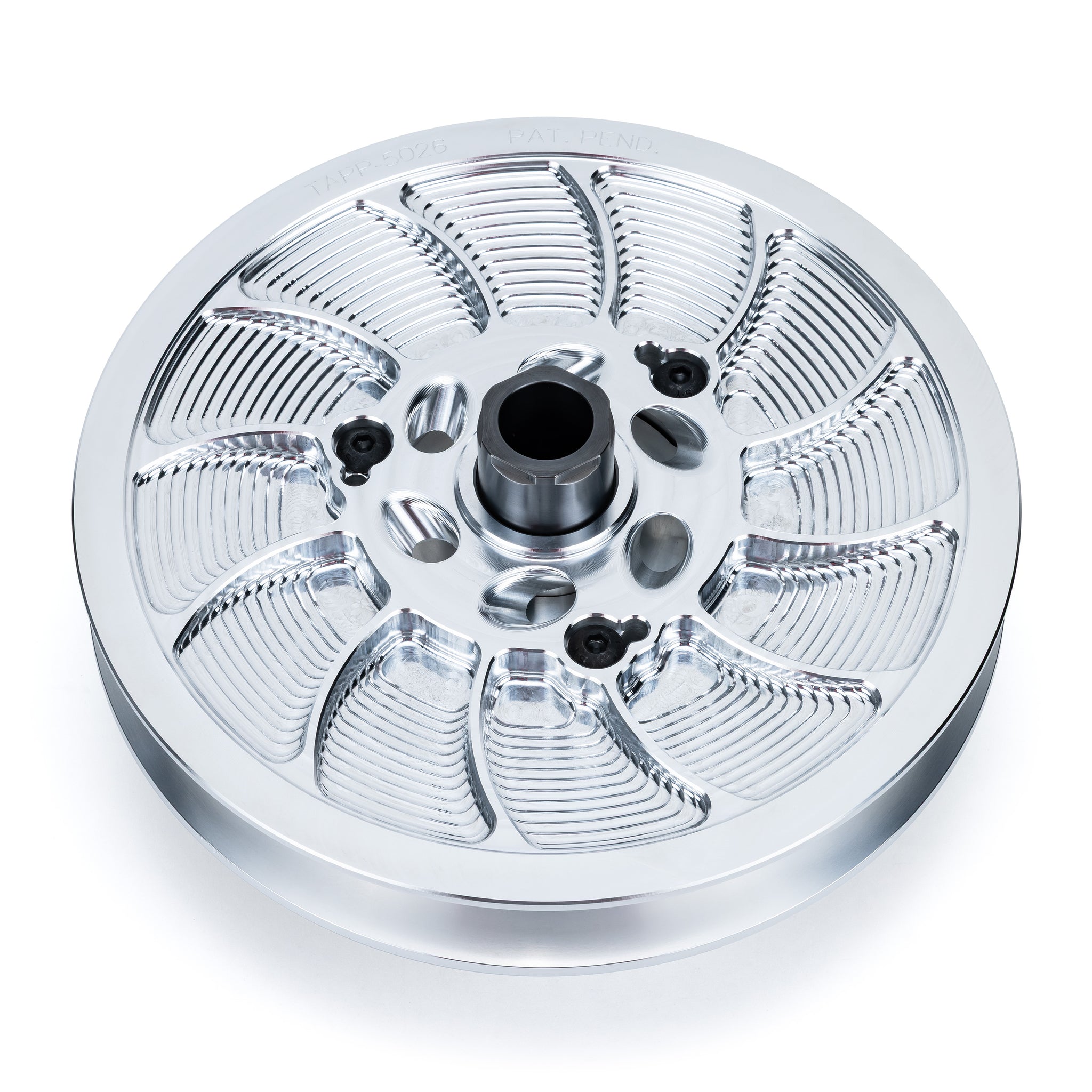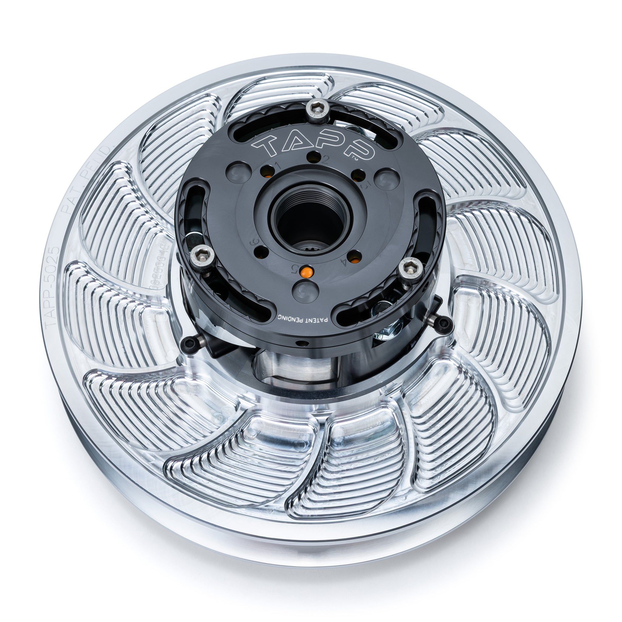 The OEM secondary has no cooling fins whatsoever and has an enclosed steel helix/shaft that builds heat and transfers it to the belt. TAPP has cooling fins machined into the sheaves along with an open helix/spring combination made from aluminum, which efficiently dissipates heat and keeps the belt cooler.